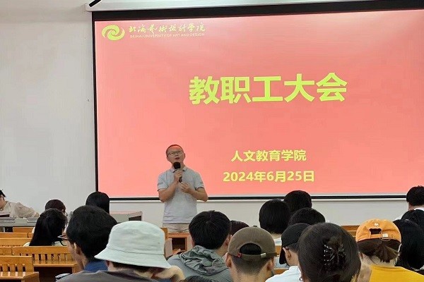 最后,分管校领导王斌总督学对我院各位教师寄予希望,王总督学指出,教育事业关乎人才培养、科学发展和文化传承各项工作,希望每位教师都能够认清形势,准确定位,扎根北艺,建设北艺,共同展望学校未来愿景,成为高水平的高校教师。王小勤/摄
