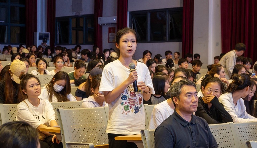 此次讲座以深刻的文化洞见和生动的艺术呈现,为舞蹈学院的师生展现了壮族舞蹈从乡野到舞台的传承与升华之路,为民族艺术的研究和传播搭建桥梁。讲座不仅让师生更深入地了解广西壮族文化,也启发了青年学子对民族文化传承与发展的思考。(陈沿宏/摄)
