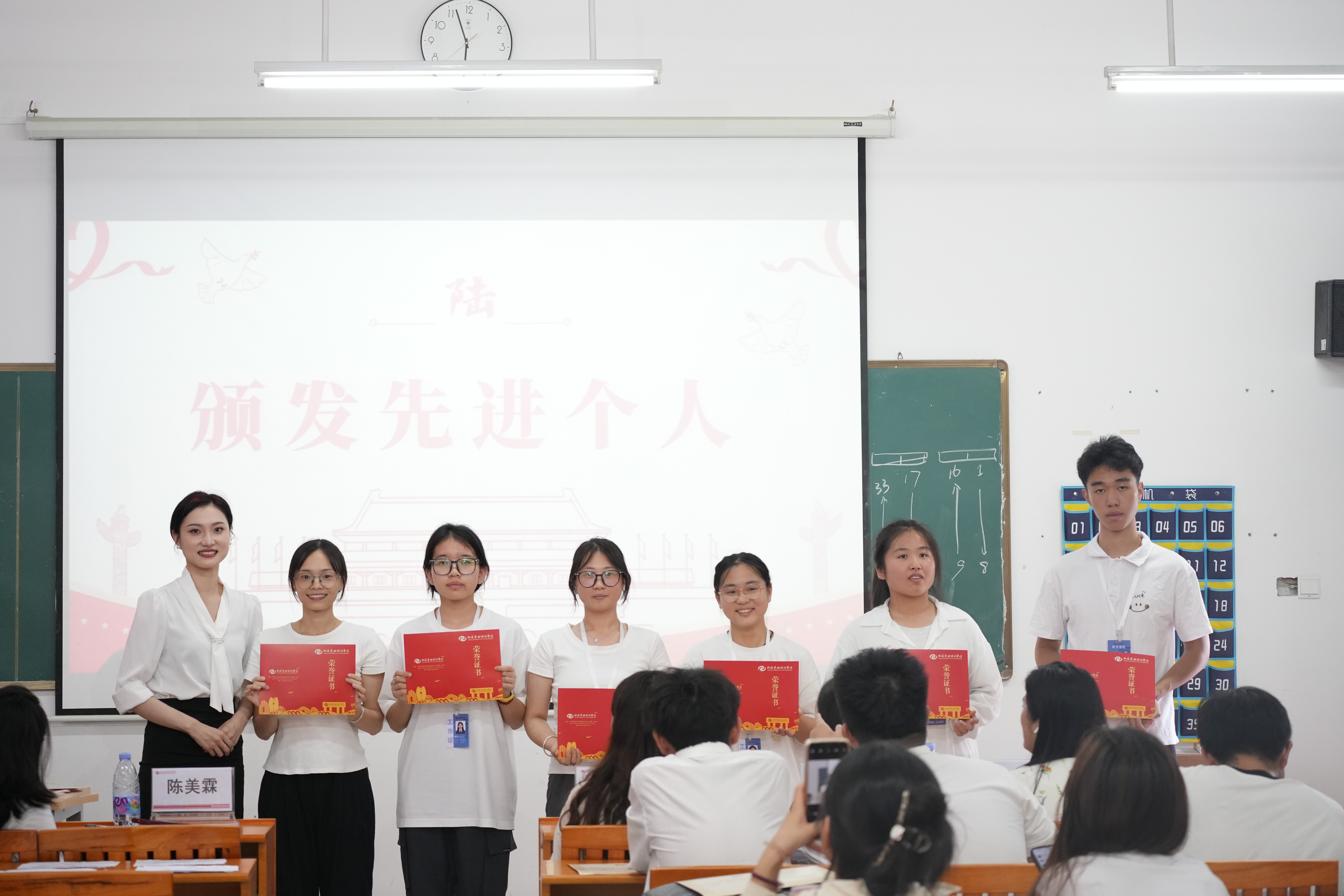 大会第项议程是为学生干部颁发聘书。各位教师代表为团总支干事颁发聘书指导老师陈美霖向表现优异的学生干部颁发2024-2025学年第二学期先进个人荣誉证书。一纸证书肯定其在本学期工作中的积极付出与出色表现,更承载着责任与信任,激励学生干部们在未来工作中继续践行初心,为团总支建设贡献力量。                                                                                教师代表给学生干部颁发聘书