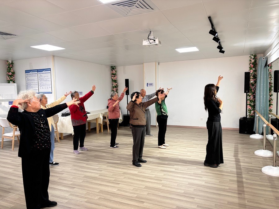 活动筹备阶段,大家围绕“适老、暖心、安全”三大原则反复打磨方案。考虑到老年人的身体机能与审美偏好,同学们精选节奏舒缓、动作轻柔的古典舞、充满时代记忆的民族舞及贴近生活的简易广场舞片段,作为本次活动的表演与教学内容。志愿者们小心翼翼,以老人们的安全为第一位,确保每一个细节都能传递出贴心与尊重