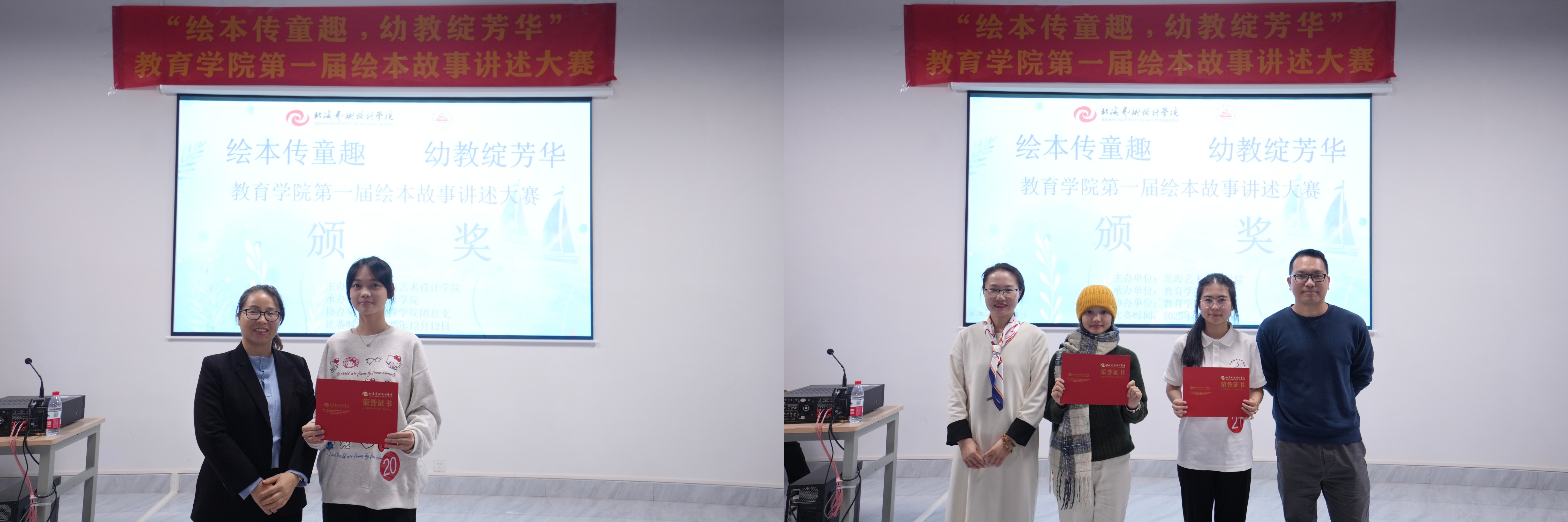 学前教育教研室主任覃思、团总支书记陈美霖为三等奖选手颁奖教务办主任黄海林、办公室主任赵阳为优秀奖选手