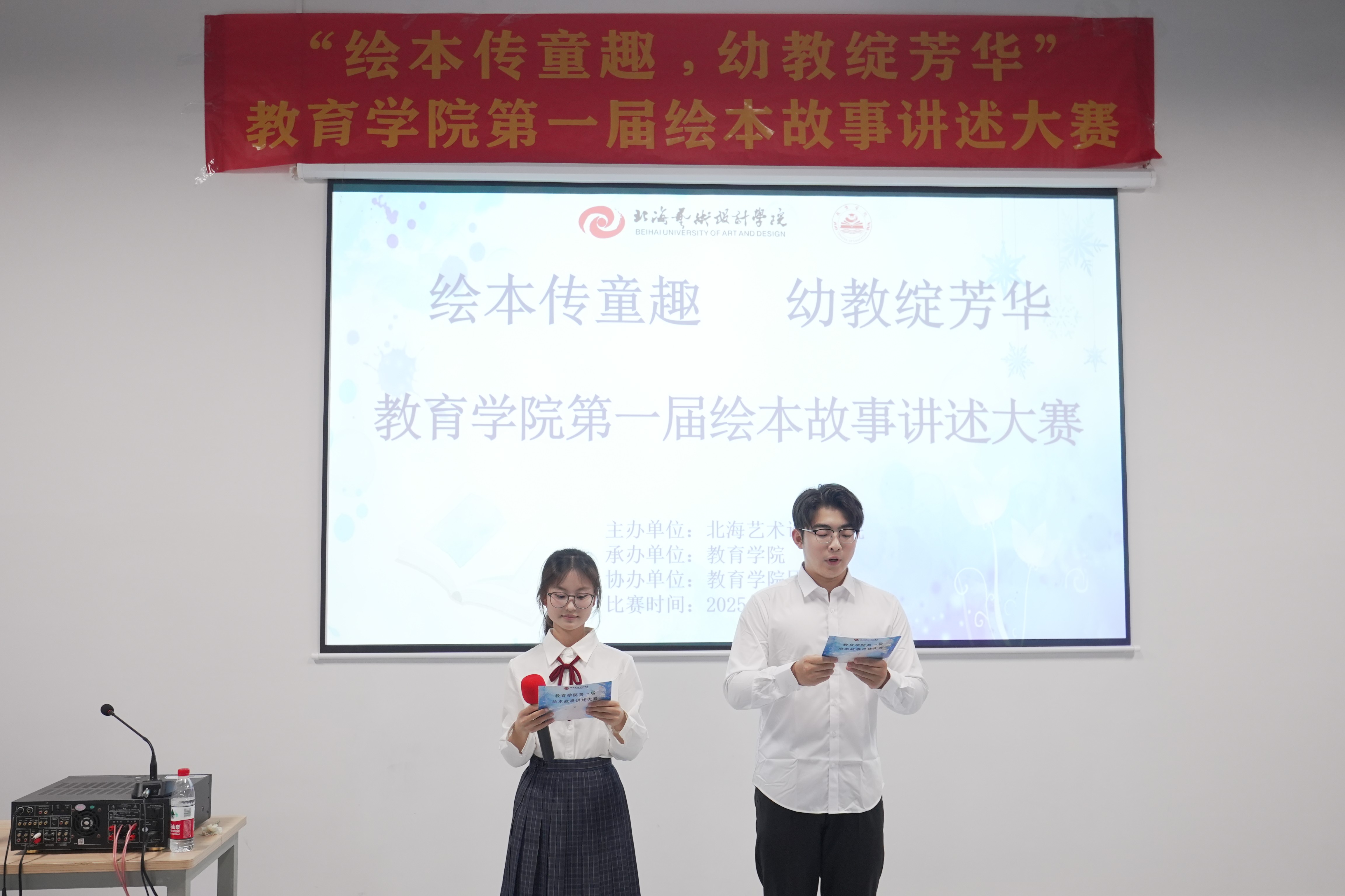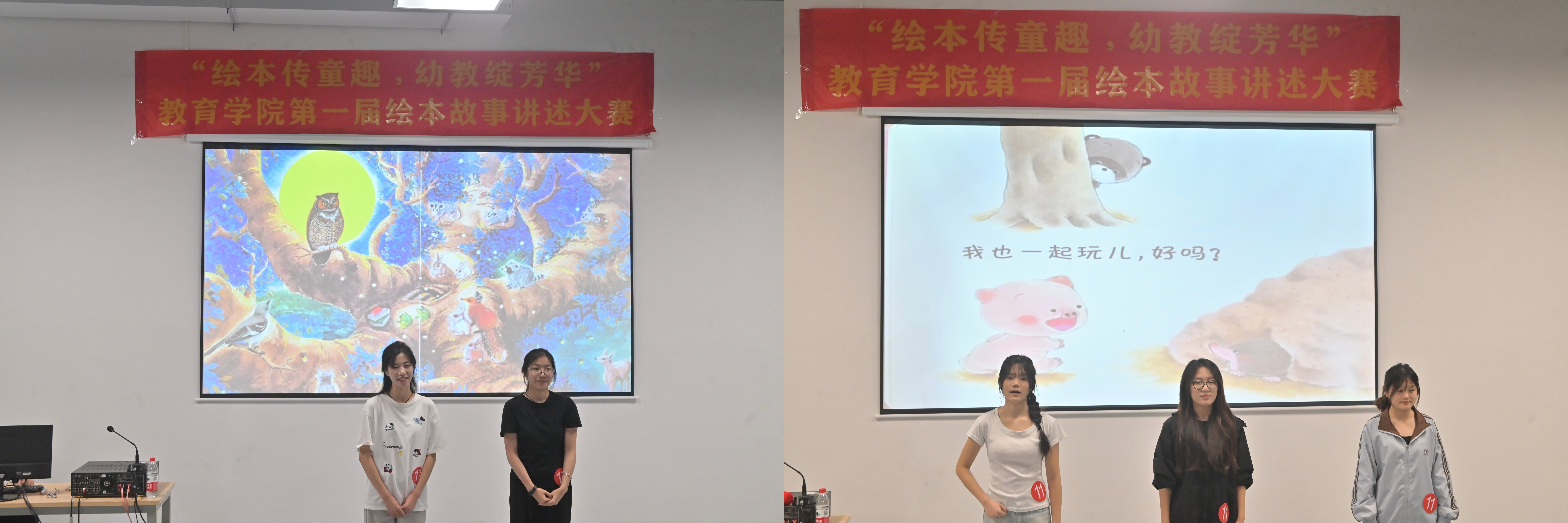 绘本如窗,推开便是五彩童趣;故事为桥,架起了海洋文化与幼教初心的纽带。12月12日,由教育学院举办的“绘本传童趣,幼教绽芳华”第一届绘本故事讲述大赛在南校区艺德楼311教室顺利举行。本次比赛由教育学院院长熊秀峰、副院长蒙剑英、教研室主任覃思、团总支书记陈美霖担任评委,教育学院副院长周劲志、教务办主任黄海林、办公室主任赵阳应邀出席比赛。