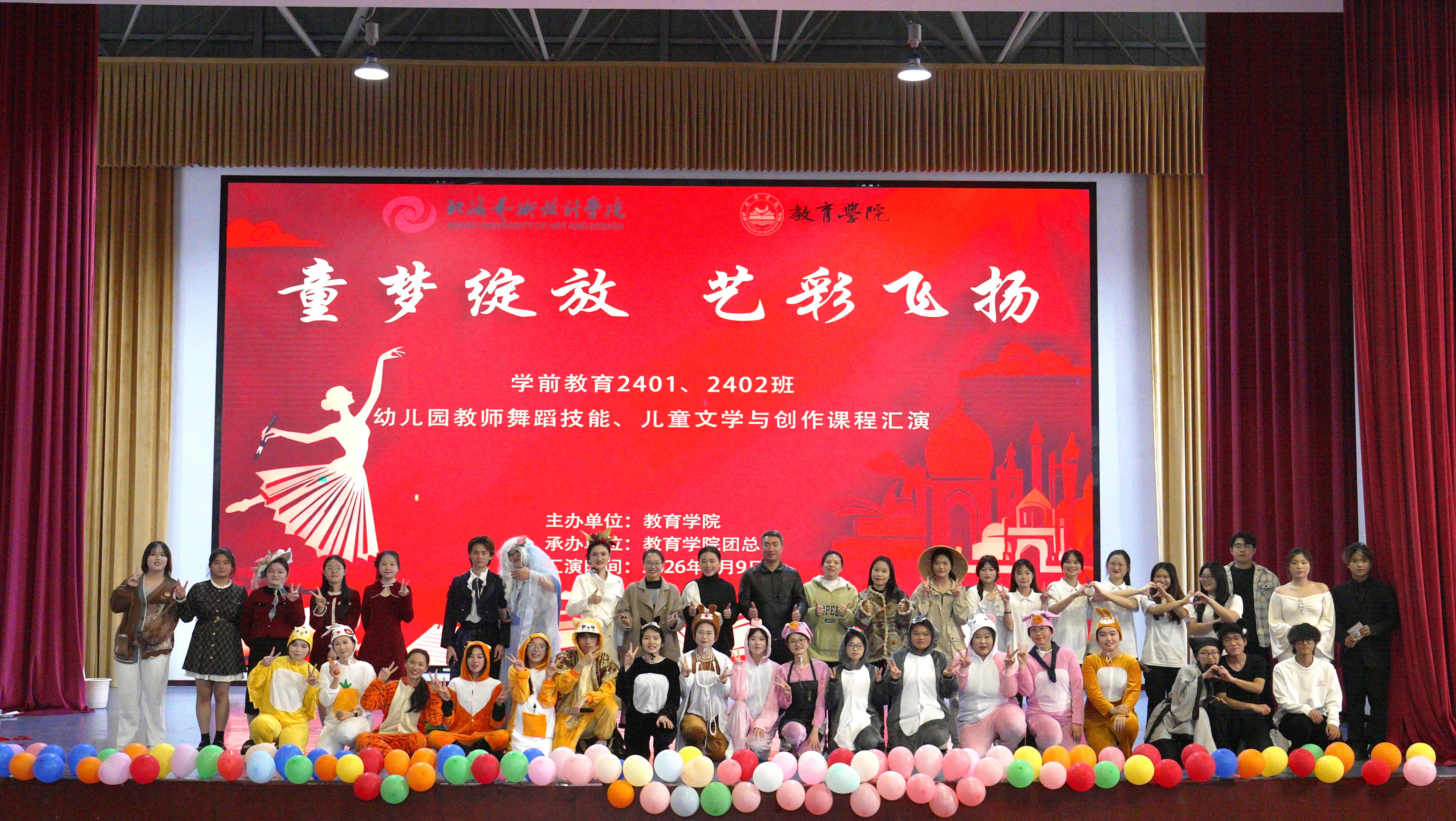舞台虽落幕,成长不停步。本次期末课程汇演有效搭建起理论与实践融合的展示平台,全面检验了《幼儿园教师舞蹈技能》《儿童文学与创作》两门课程的教学成果,切实提升了学前教育专业学生的专业实践能力。未来,教育学院将继续坚守育人初心,持续优化课程体系、强化实践教学,助力学子锤炼过硬专业本领,成长为适应学前教育事业发展需求的复合型、专业化幼教人才,为学前教育事业高质量发展贡献坚实力量。(缪仁文、阮红艳、周雨潇/摄)