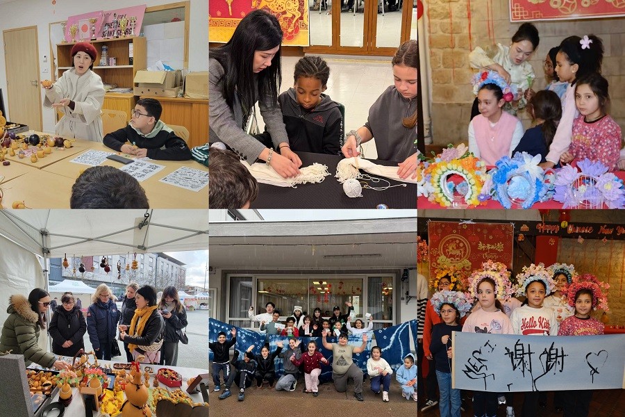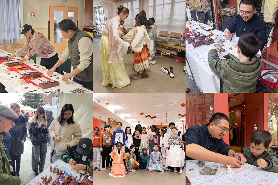 2026年2月16日至22日,受法国勒布朗梅尼勒市市政府邀请,我校组团赴法参加“2026中国新年周”系列庆典活动。在学校董事长郑念贻带领下,舞蹈学院常务副院长邓欢率青年教师莫莉荣、石鹏飞、苏泽浩、吴靖文,优秀毕业生王广坤一行,与学校其他学院的非遗手工艺教师共同组成文化交流团。本次文化盛事由勒布朗梅尼勒市市政府主办,汇聚了植物染布、书法篆刻、传统香道体验、非遗香云纱时装走秀等丰富多彩的传统手工艺与文化展示项目,我校各学院教师各展所长,为法国民众呈现了一场沉浸式的中国文化盛宴。