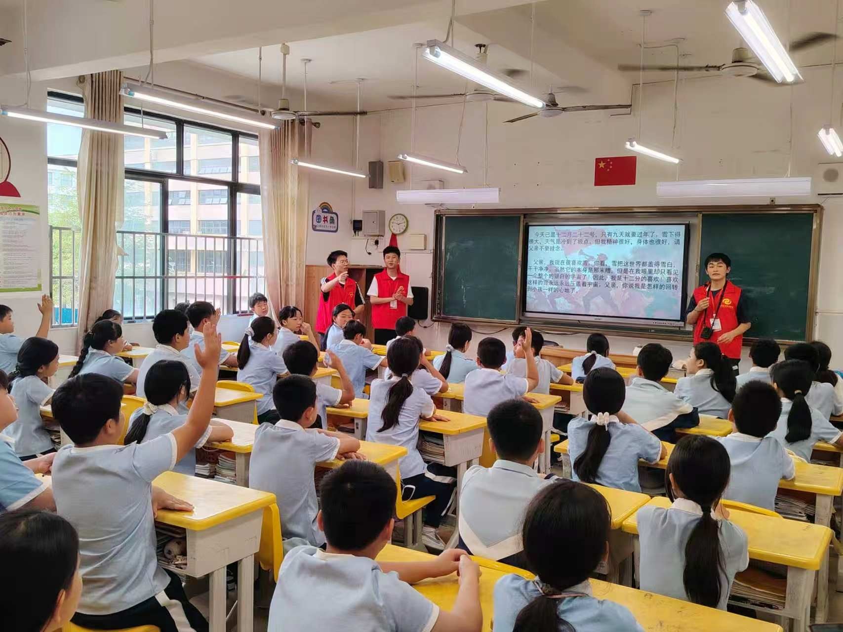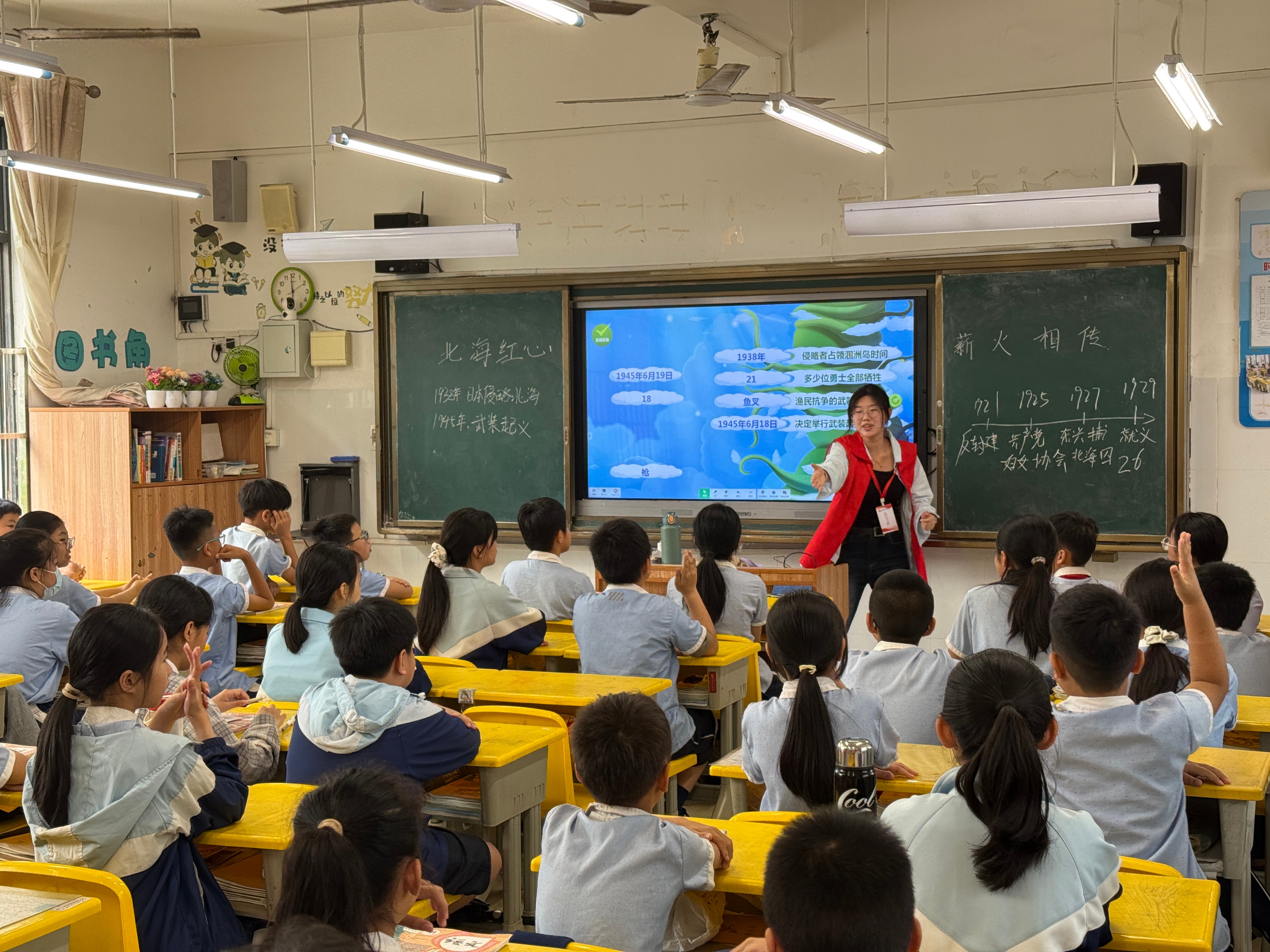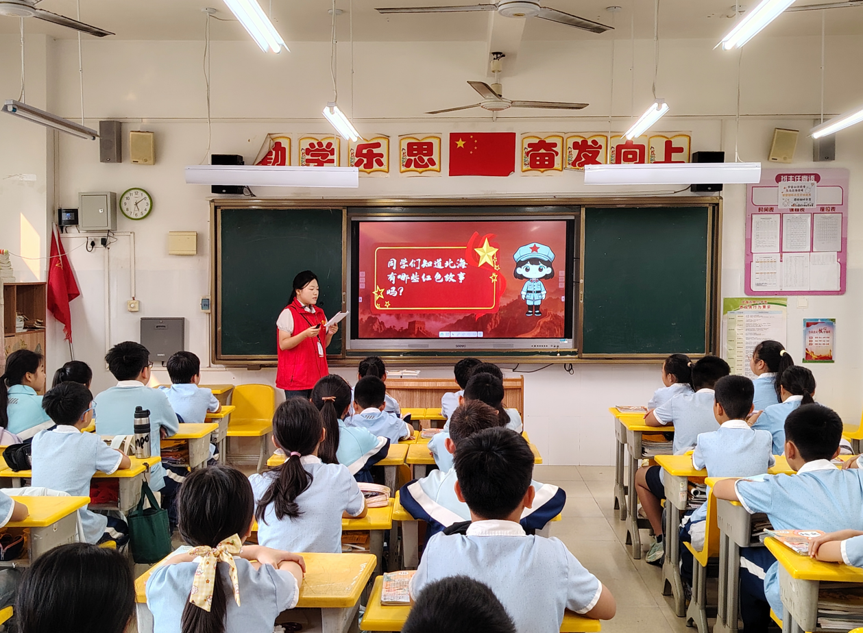 总结会后全体同学以小组为单位,在各班级独立组织红色主题教育班会。同学们充分发挥汉语言文学专业文本解读与叙事表达优势,通过诵读红色家书讲述红色故事组织集体宣誓等形式,将北海市的红色事迹用儿童喜闻乐见的生动方式呈现。班会现场气氛热烈,掌声不断。带班教师对班会效果给予高度评价,认为活动既弘扬了红色文化,锻炼了同学们的综合实践能力。