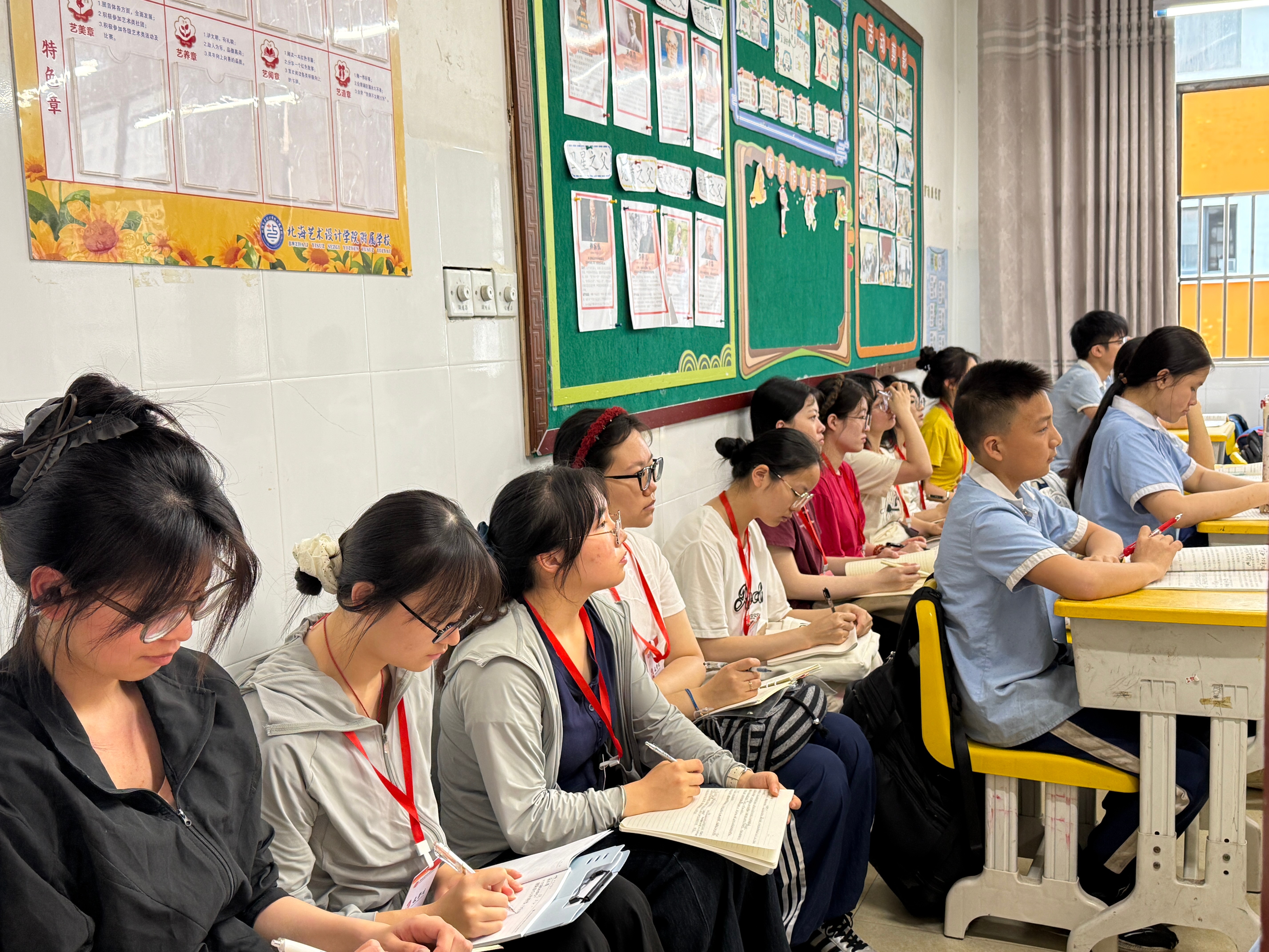 为进一步提升汉语言文学专业学生的教育实践能力,深化校际合作,近日,北海艺术设计学院文学院2023级汉语言文学专业2301班、2302班、2305班全体学生,赴北海艺术设计学院附属学校(以下简称“北艺附校”)开展了为期一周的专业考察活动。活动期间,同学们进班听课、协助带班老师完成教学管理工作,并成功组织红色主题教育班会,充分展现了文学院学子扎实的专业素养和良好的精神风貌。