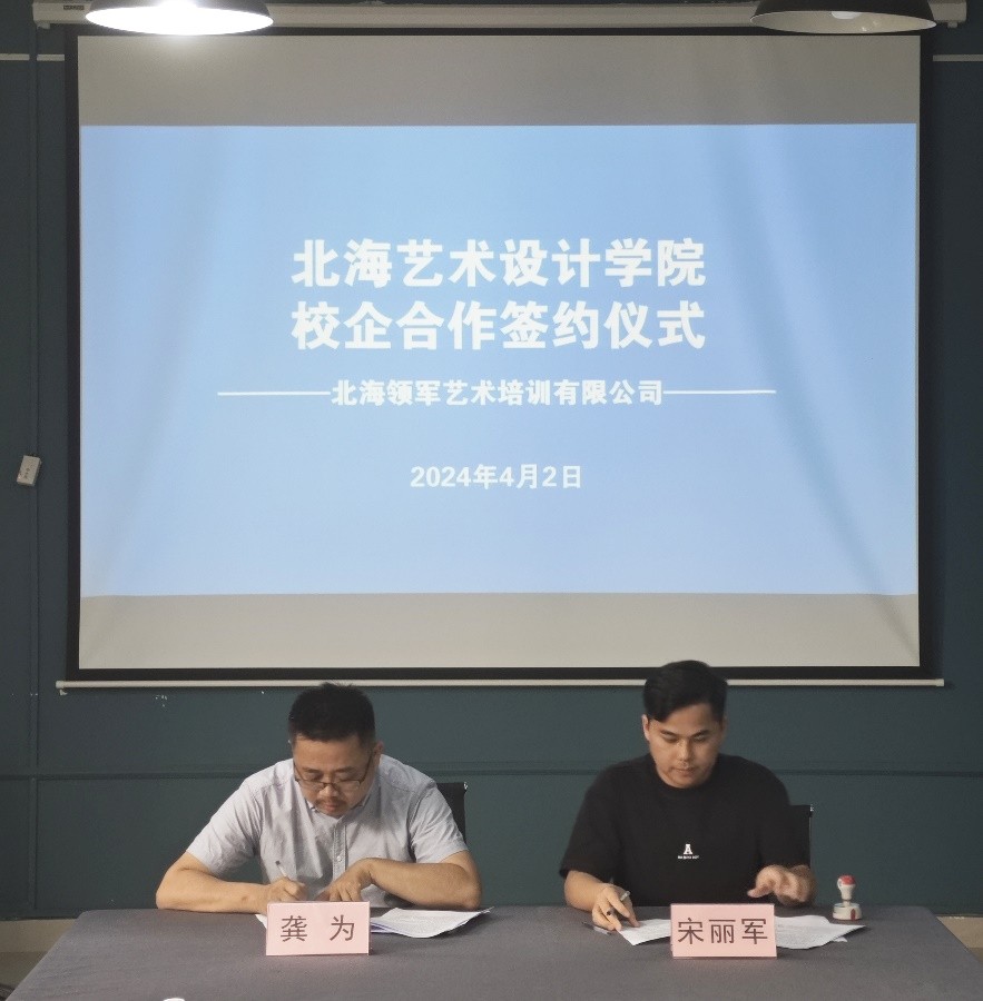 2024年4月2日,北海领军艺术培训有限公司宋丽军一行莅临美术学院,进行了一次富有成效的参观交流活动,并与学院成功签订校企合作协议。
