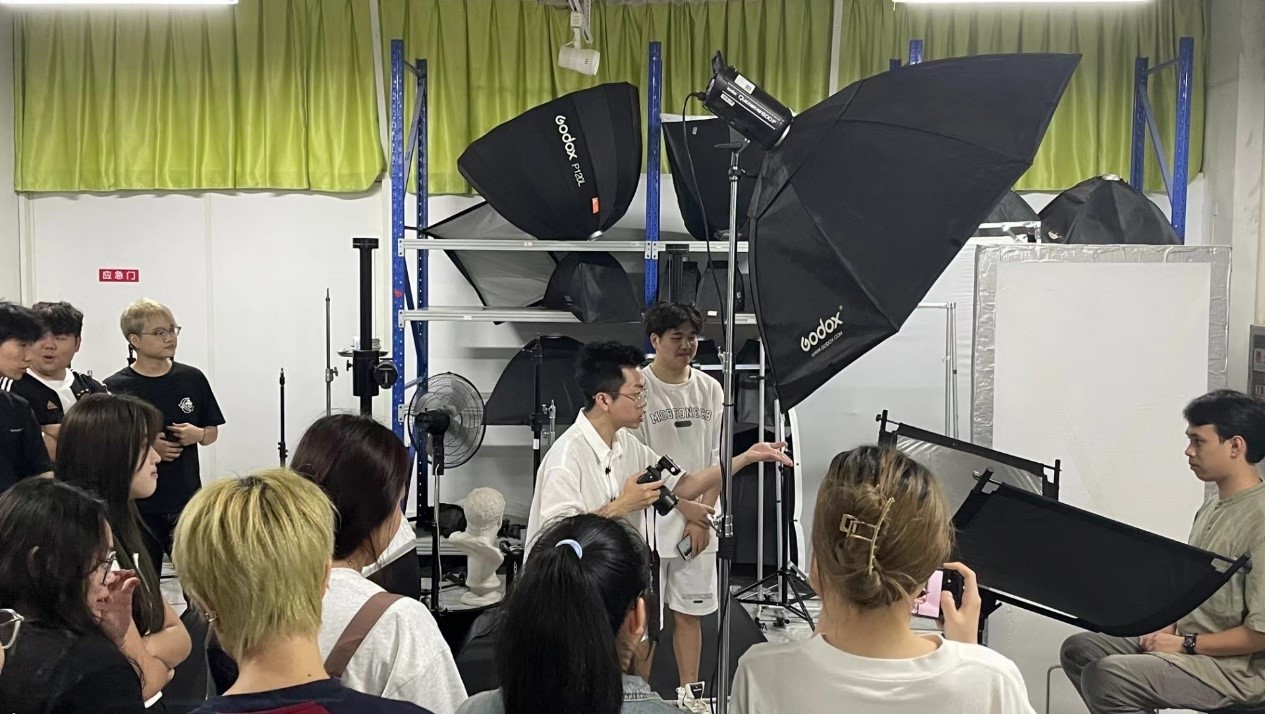 美术学院摄影专业2021级全体共47名学生全程参与本次企业入校培训。企业校企合作负责人长春首先向同学们介绍了杭州海马体摄影有限公司的发展历程、品牌理念、企业文化。海马体照相馆督导罗京老师负责为期五天的技能与技术培训,作为在全国拥有600余家门店的大型连锁企业集团,参训学生从中学到了宝贵的实践经验,特别对于顾客的情绪引导与动作引导等内容的导入,以及对学院的理论基础教学做出了有益的补充。