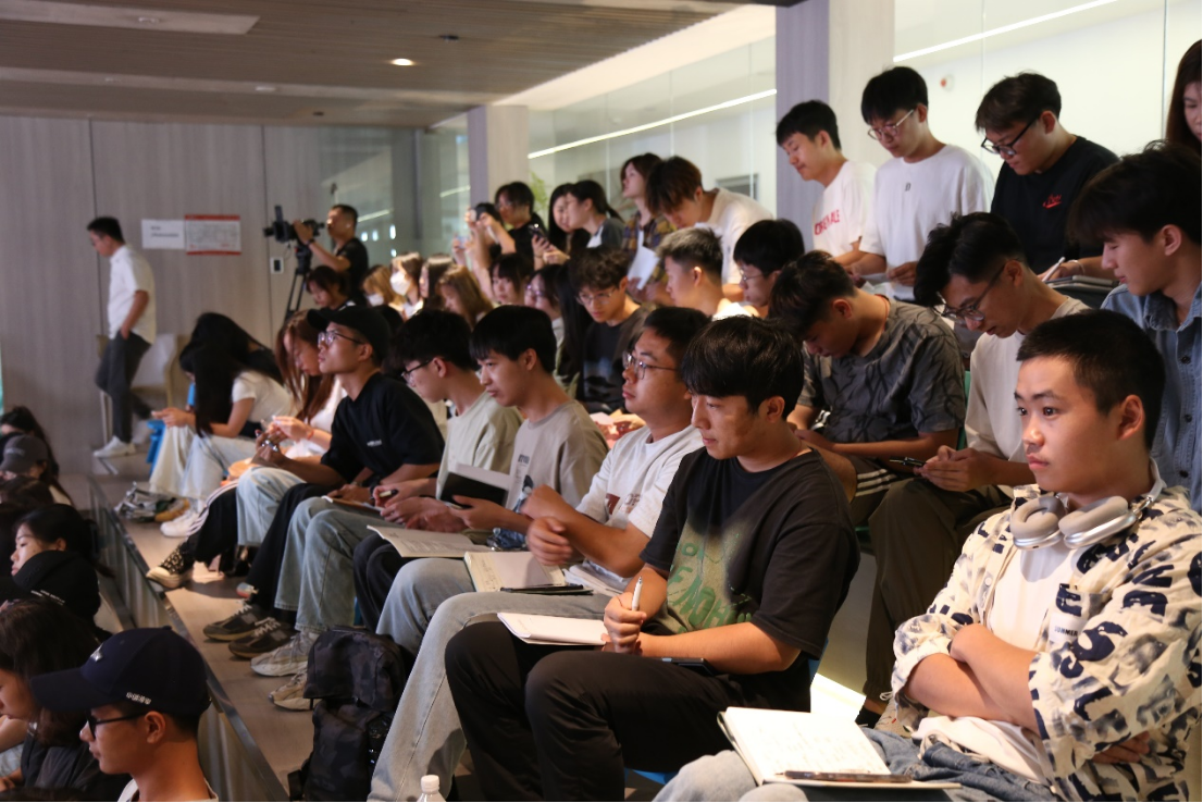 在课堂的最后一刻钟,同学们积极的对张云老师提出心中的问题,例如:张云老师平时灵感匮乏的时候应该怎样去寻找灵感;张云老师在成立团队的时候是先成立了团队,还是在路上寻找志同道合的伙伴;近年来大环境对于环艺专业的同学不是特别的友好,作为环艺专业的