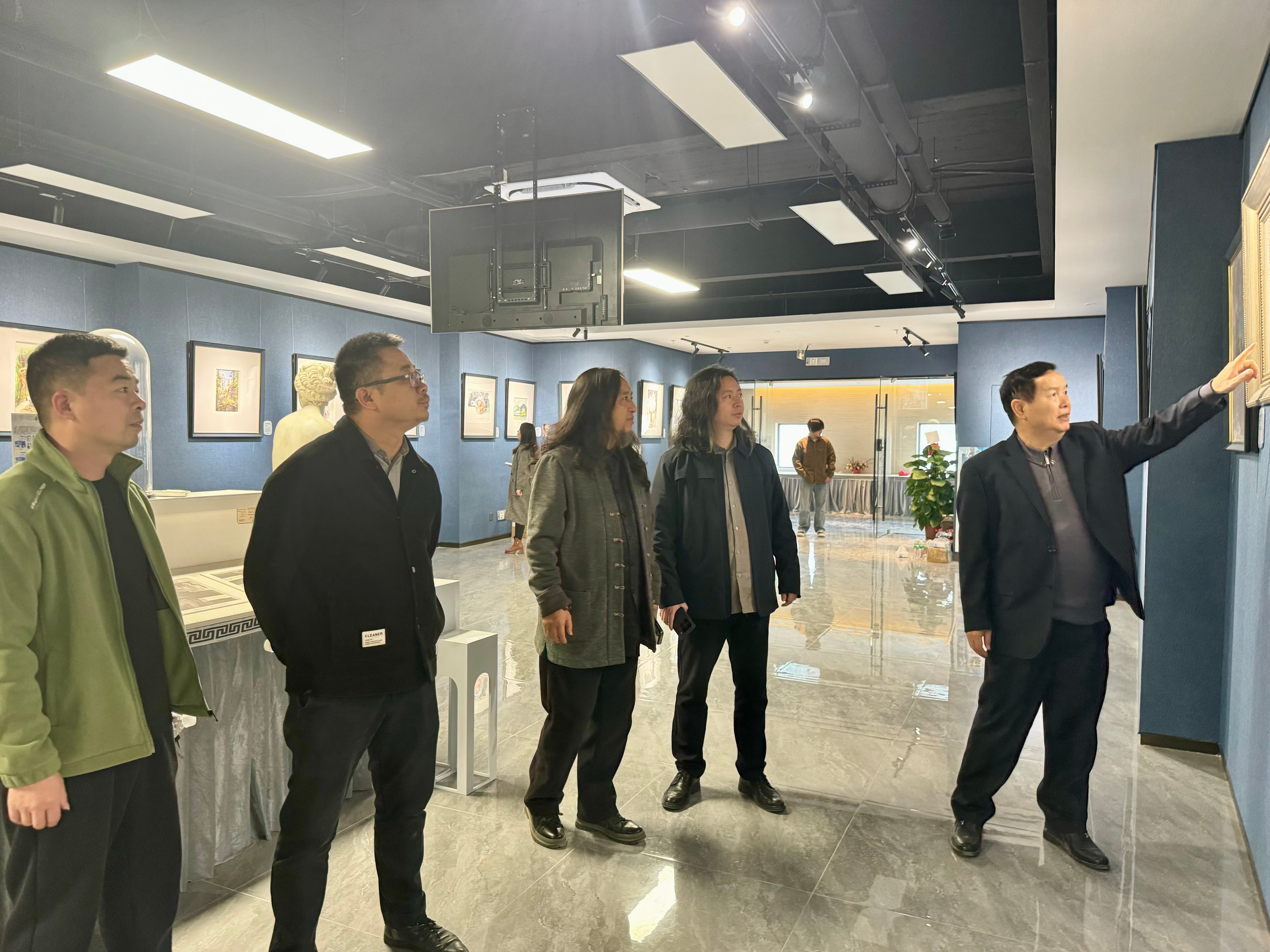 揭牌仪式后,著名画家何二民先生带领大家参观和介绍展厅的作品,同时也为后续与美术学院的合作交流表达了美好期望。
