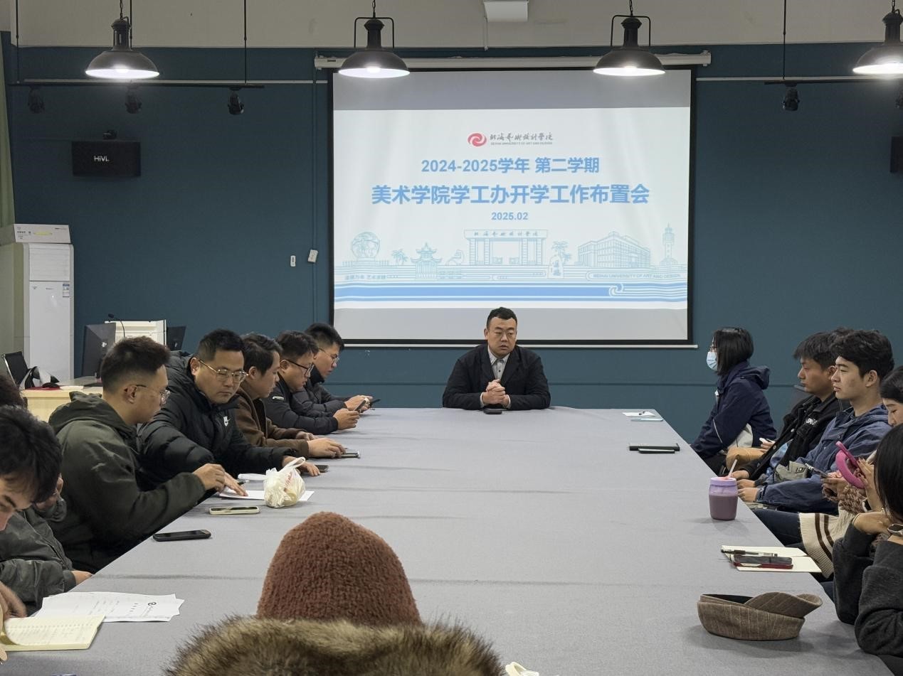 202526日,美术学院学工办于艺术楼313召开新学期工作部署会,会议由美术学院党总支副书记鲁明阳主持,学工办教师及各班级辅导员参加会议。