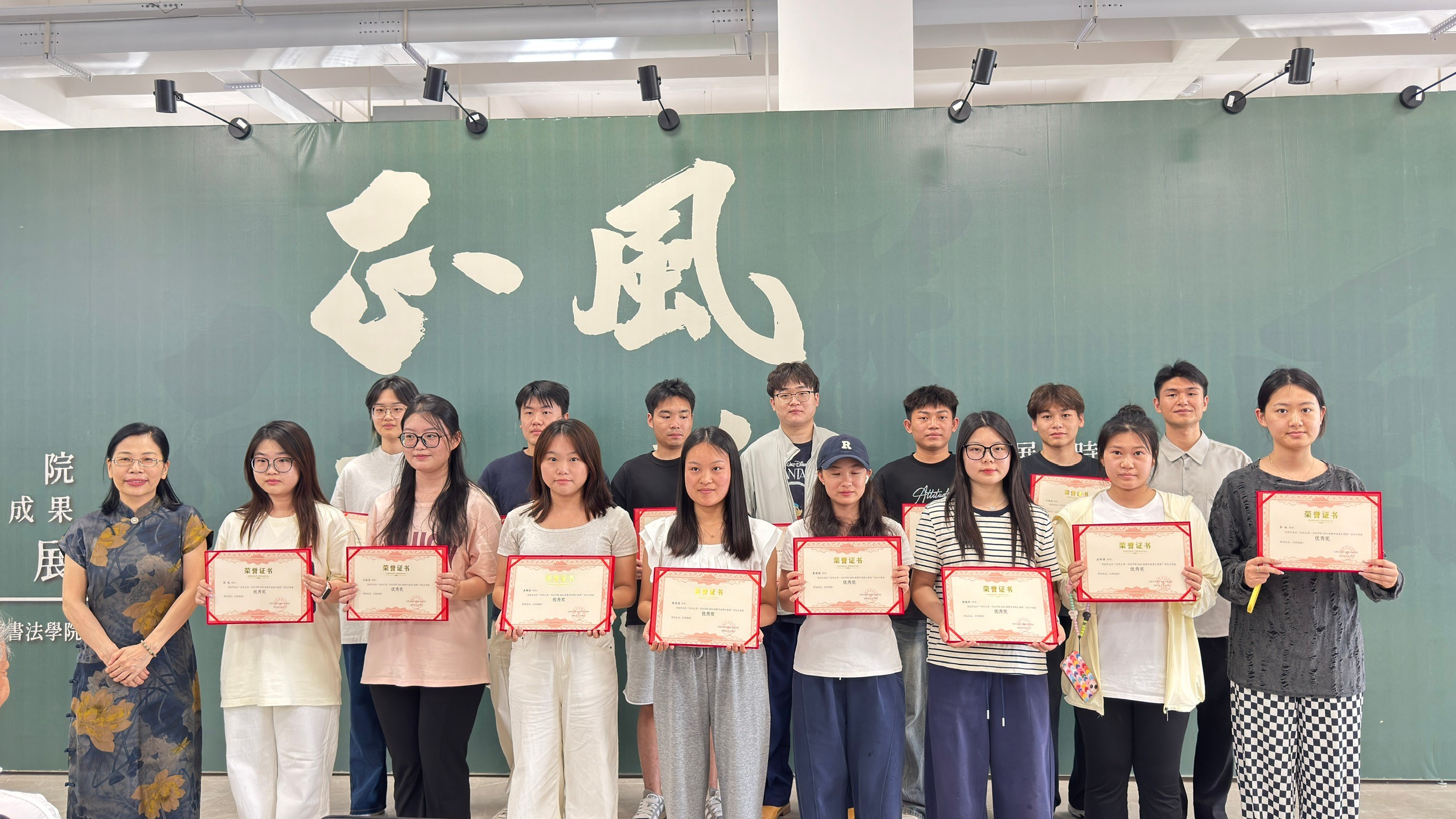 开幕式上还举行了颁奖仪式。本次展览共评出优秀奖30件,学校领导为获奖同学颁发了荣誉证书,对他们在书法学习中取得的优异成绩表示祝贺。(何保 摄)