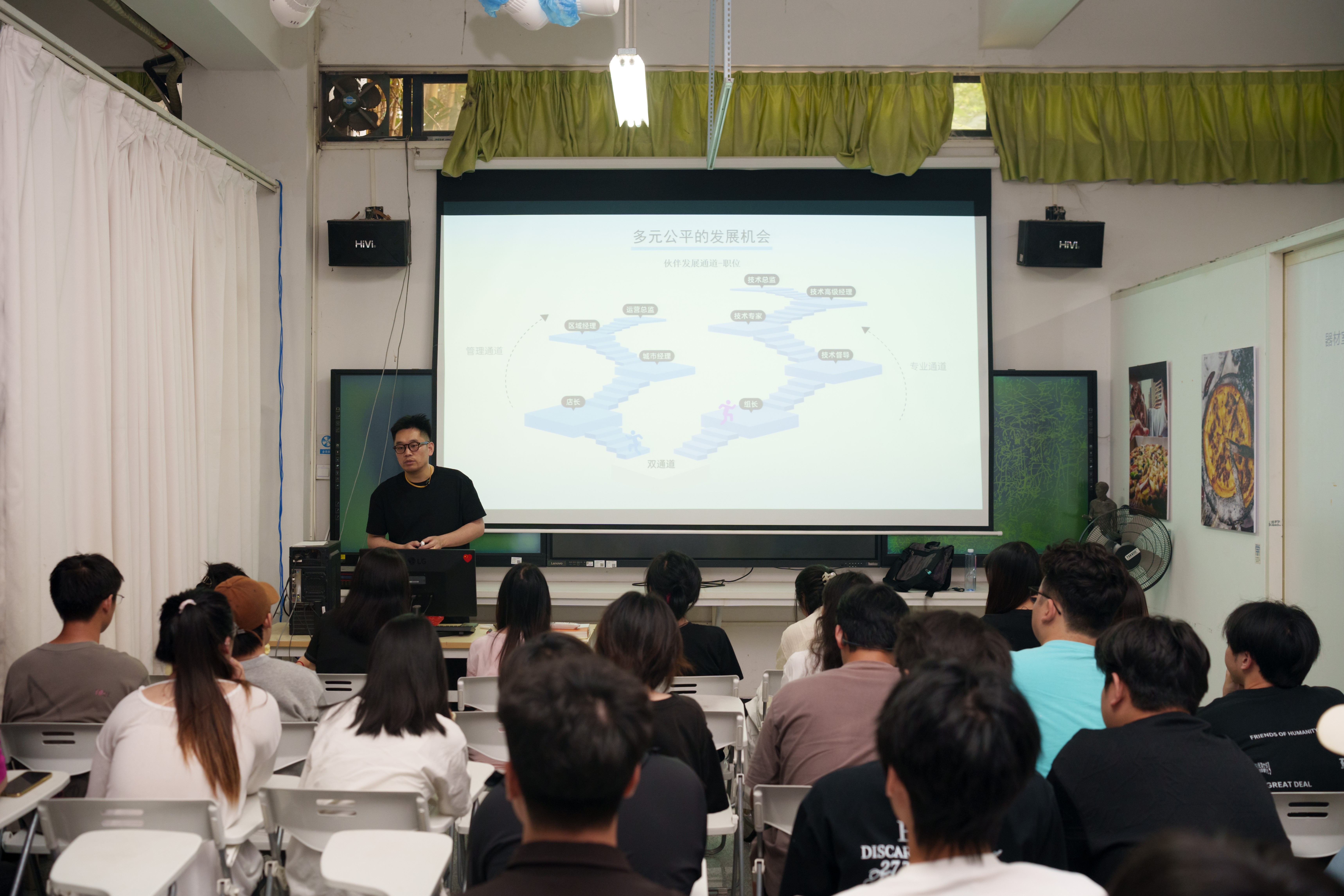 美术学院摄影专业2022级全体46名学生全员全程参与本次培训。海马体集团校企合作负责人徐贤城在开班仪式上系统介绍了企业的发展历程、品牌理念与企业文化,并着重介绍了创新构建的全职与兼职并行的双轨实习体系。
