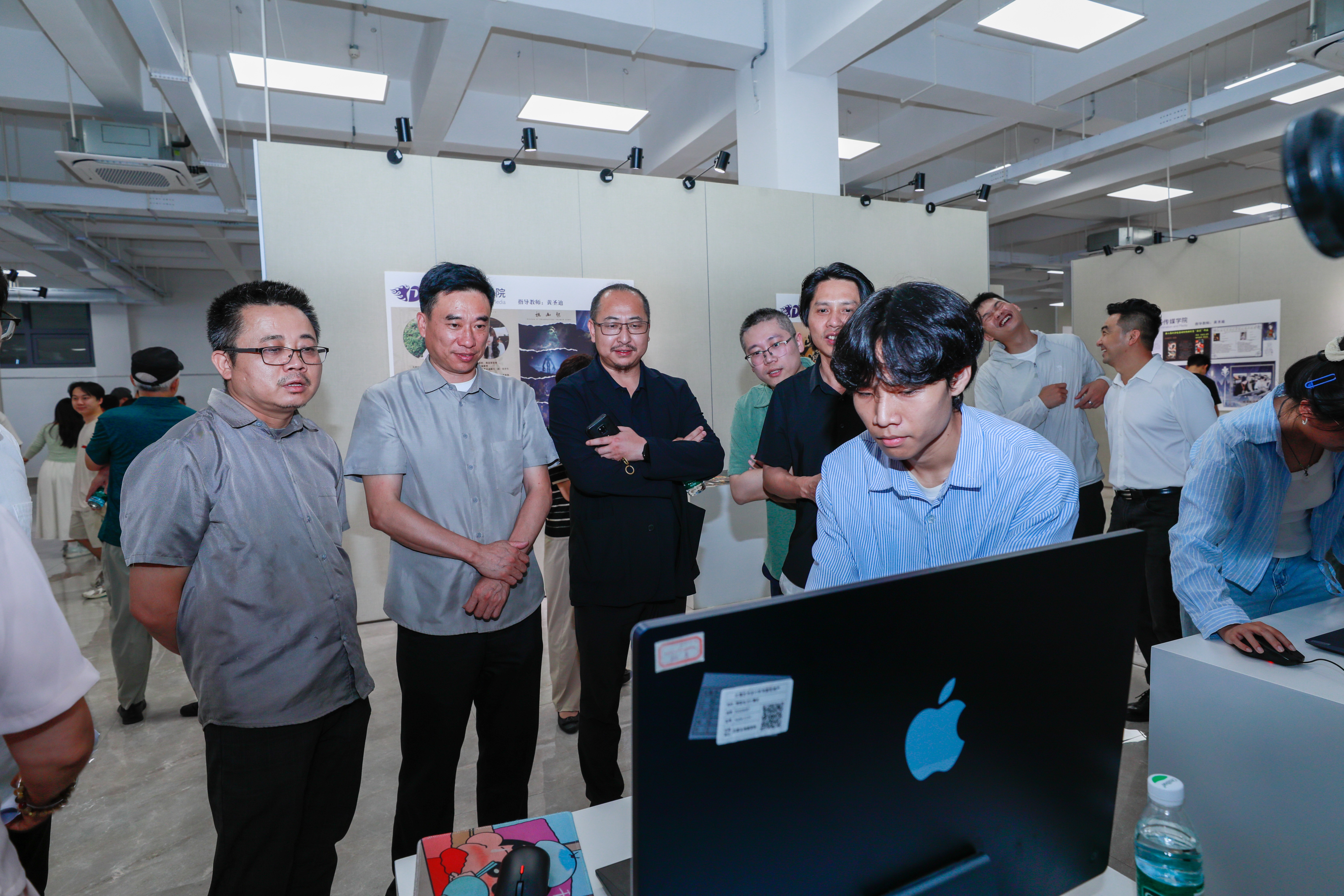 为深化教学成果展示,搭建艺术交流平台,激发学生创新活力,5月28日,我校影视动画学院“鲸鱼杯”第七届“和”动画作品联展开幕式在南区艺德楼九楼北展厅成功举办。本届联展汇聚14门核心课程的四百余件作品,以多元视角呈现动画艺术的魅力。北海艺术设计学院副校长陶立阳、教务处长武鹏程、美术学院院长龚为、建筑与环境艺术学院院长张春平、动画与传媒学院党总支书记张帆、院长孙永辉等学院领导嘉宾及师生共同参与,见证这场艺术与创意的盛宴。