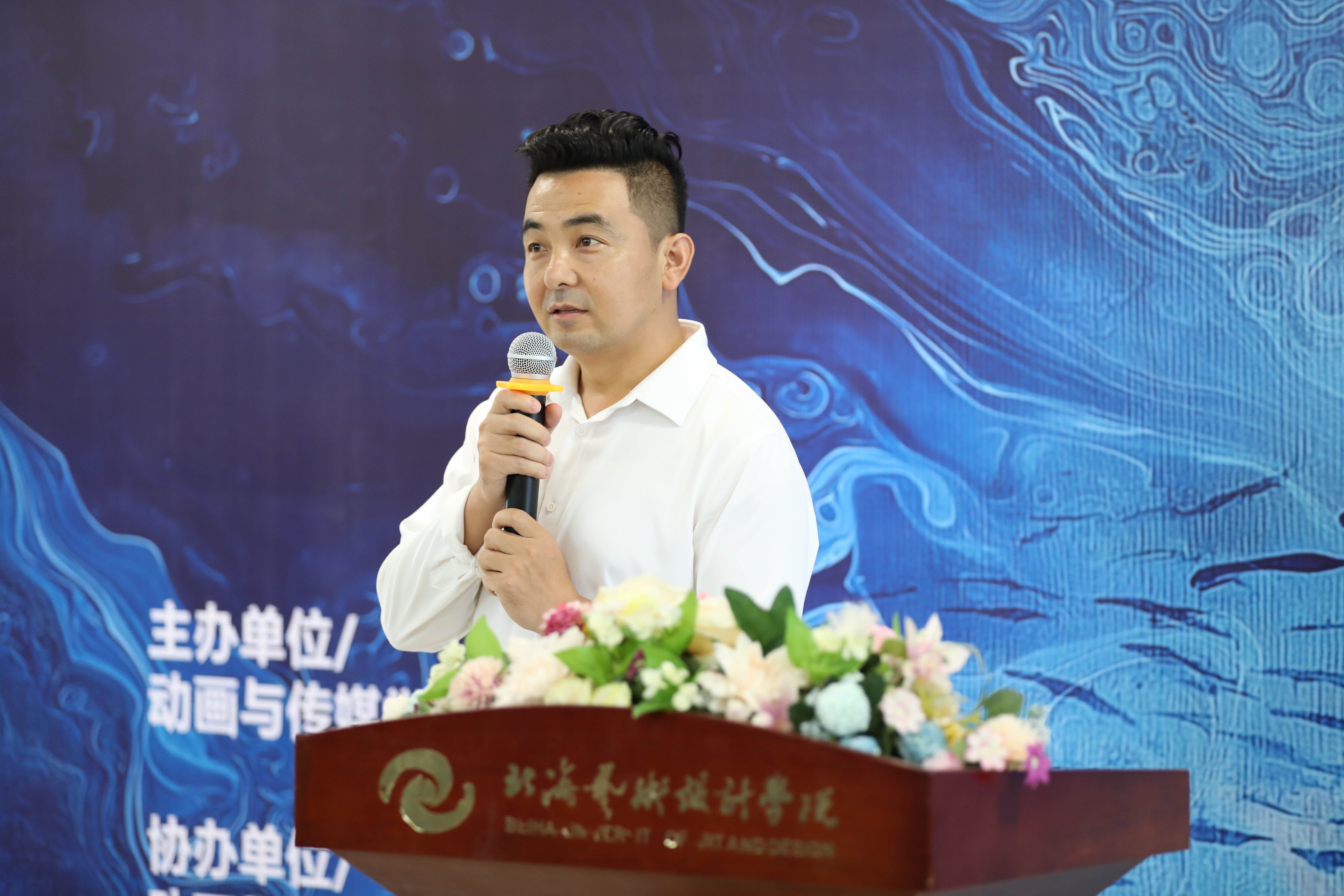 随后,孙永辉院长在致辞中表示,动画与传媒学院将持续深耕 “多元共生” 教学体系,打破学科壁垒,鼓励学生从跨文化语境、多元艺术风格与前沿技术中汲取灵感,培养兼具全球视野与创新思维的动画人才。“动画不仅是技术的呈现,更是观照世界的语言。” 孙永辉院长期待同学们以联展为起点,用作品传递对生活的热爱与思考,在艺术探索中塑造独特的艺术表达。