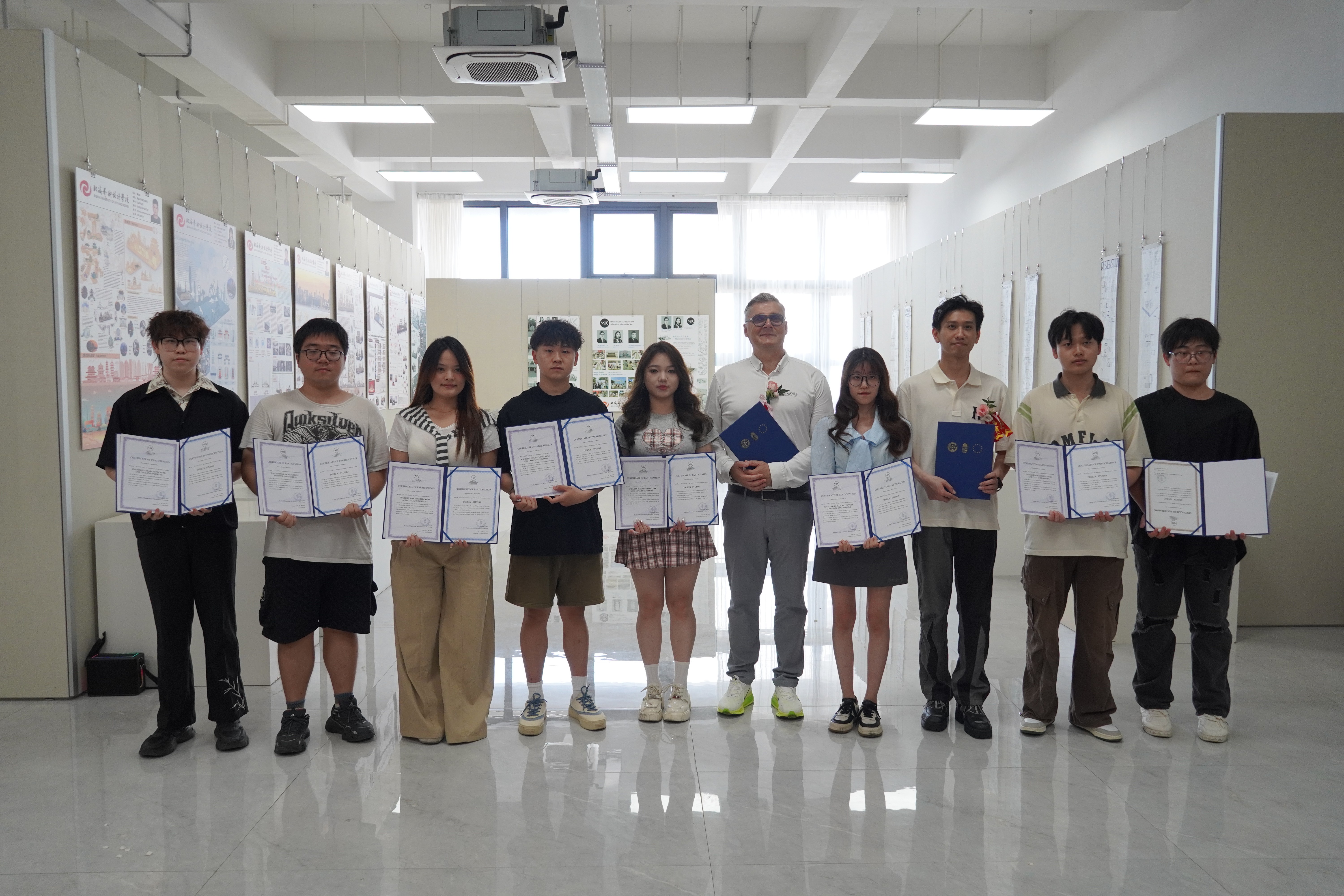 此次成果展,学生的作品涵盖建筑设计、设计实践等多个方面。每一件作品都凝聚着学生们的心血与智慧,展现了他们在短期课程中的学习成果。参加展览开幕式的领导和嘉宾对学生们的才华与创意给予了肯定。开幕式现场,领导和嘉宾还为本次短期课程的优秀学生和授课教师颁发了荣誉证书。