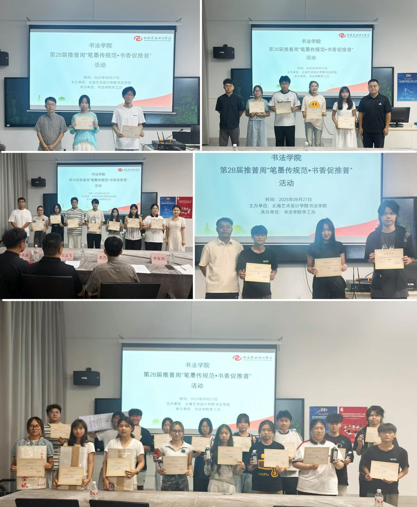 墨香未尽,书声可期至此,书法学院宿舍规范汉字书写比赛暨推普成果展示活动圆满落幕。此次活动不仅丰富了学生的校园文化生活,更让推广国家通用语言文字的理念在书法实践中落地生根。未来,书法学院将继续深化“书法+推普”特色模式,让规范之美、文化之韵在校园中持续回荡,为铸牢中华民族共同体意识贡献书法专业力量。