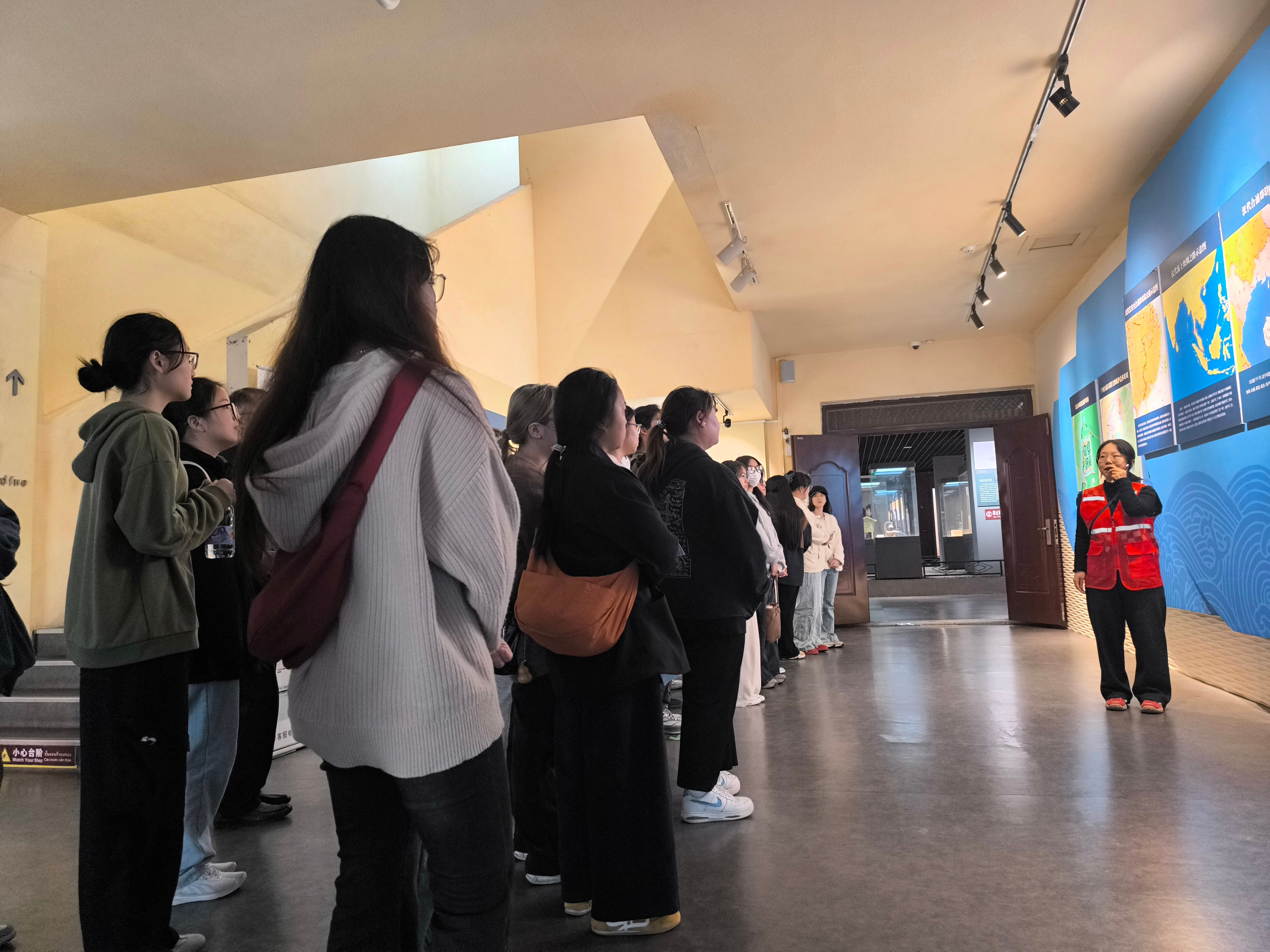 在博物馆内,师生依次参观了陶器、青铜器等核心展区,重点观摩了各类珍贵文物,从陶器纹饰、青铜器工艺中体悟汉代审美特征与制作技艺。通过专业讲解,学生对合浦作为汉代海上丝绸之路始发港的历史地位及相关文化交融现象有了系统认识。波斯陶壶、罗马玻璃碗等文物,生动展现了当时中外文化交流的实态,也为理解书法艺术在跨文化语境中的发展提供了实物参照。