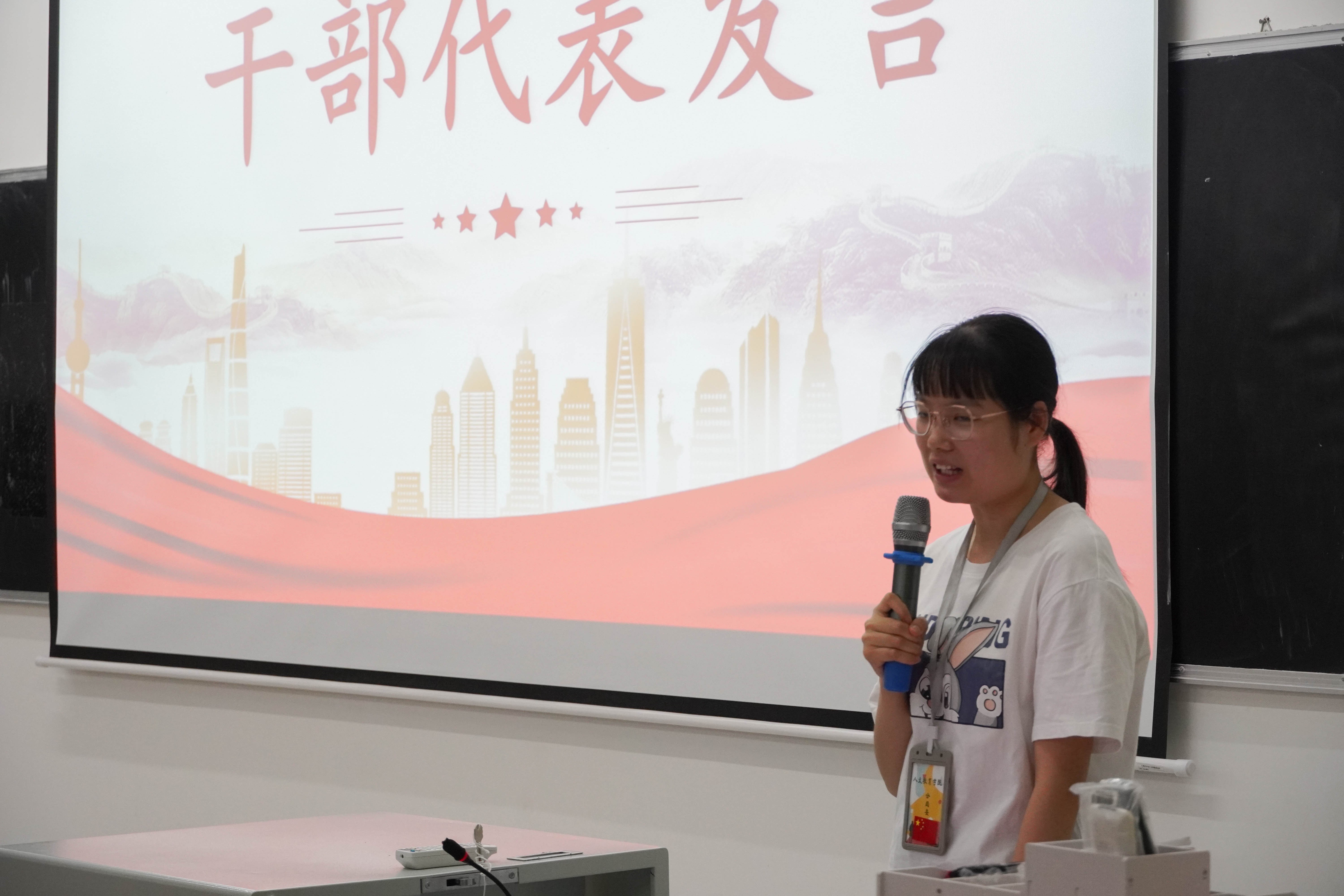大会第三项议程,由史晓菲老师为分团委干事颁发聘书以及优秀干事、优秀部门证书,并进行总结发言。史晓菲老师在发言中勉励新一届的分团委干部学思践悟,知行合一,并对2023-2024第1学年招新工作的开展进行了指导,肯定了三年来大三干事在自己的岗位上辛勤工作,对分团委默默付出,并为即将离校的干事送上祝福。