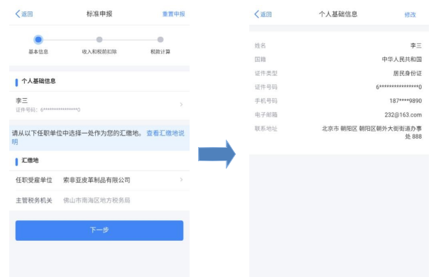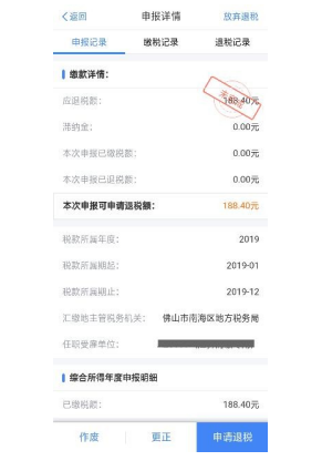 (一)核对个人基础信息、汇缴地、查看收入明细数据, 确认已缴税额。