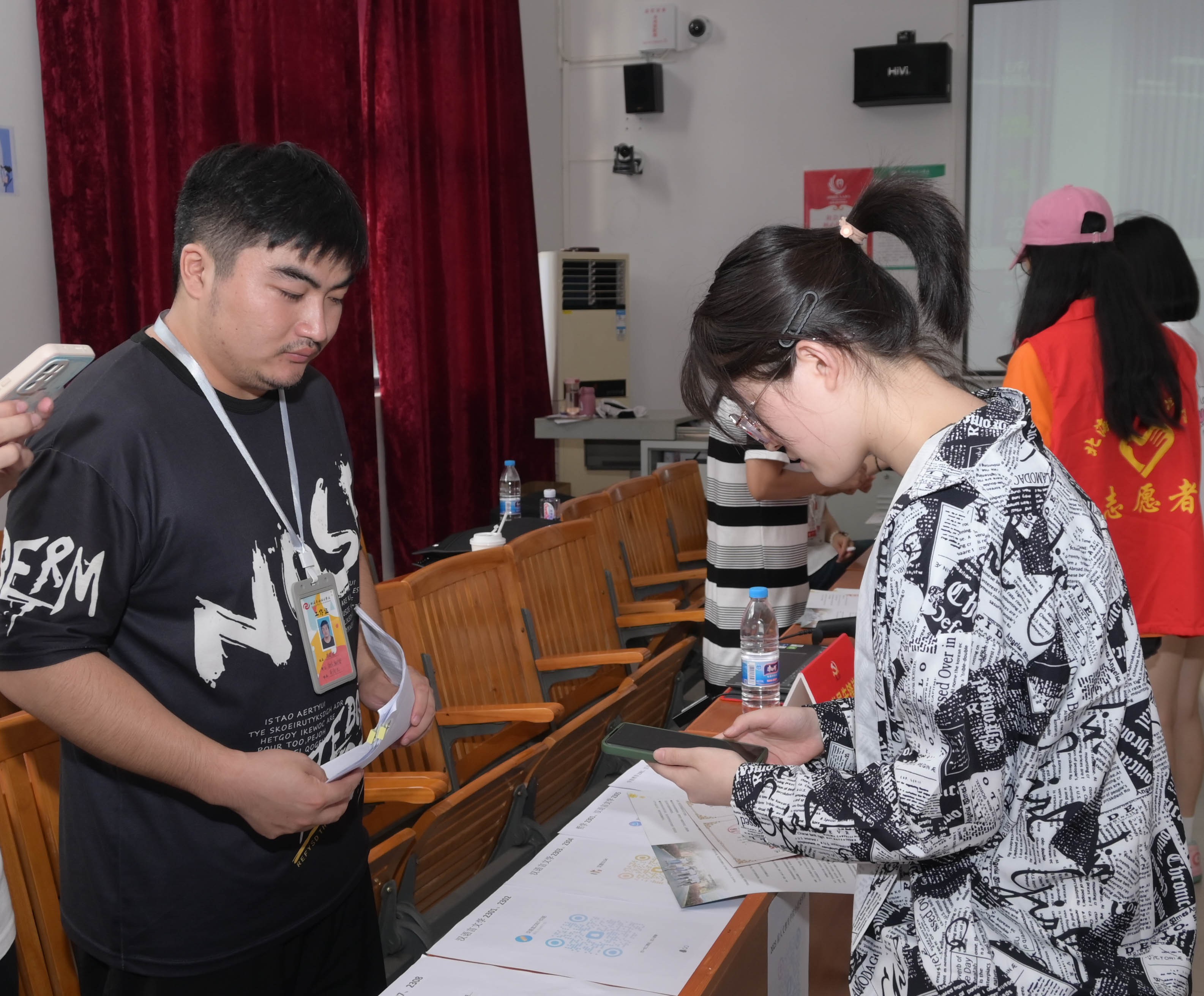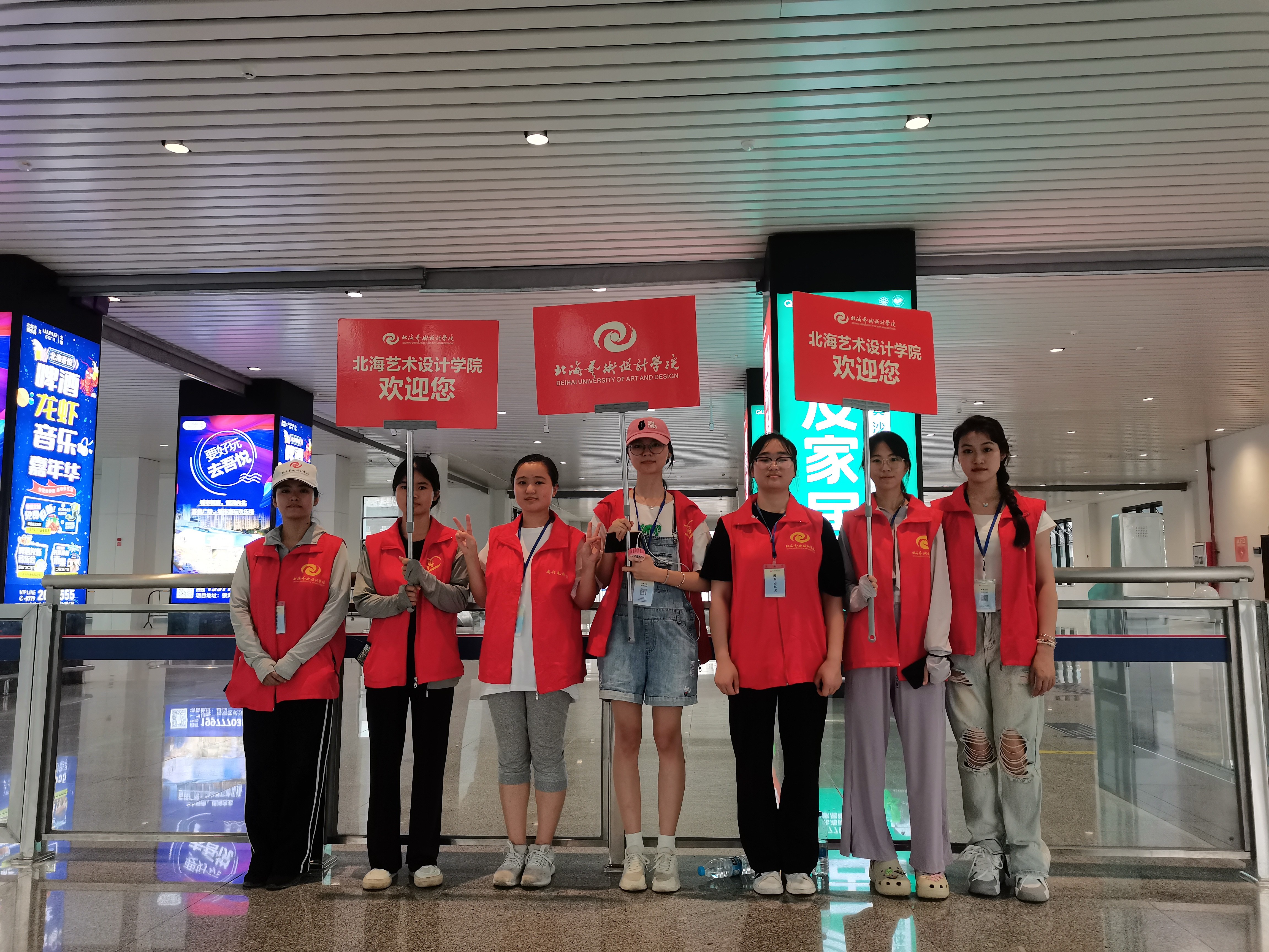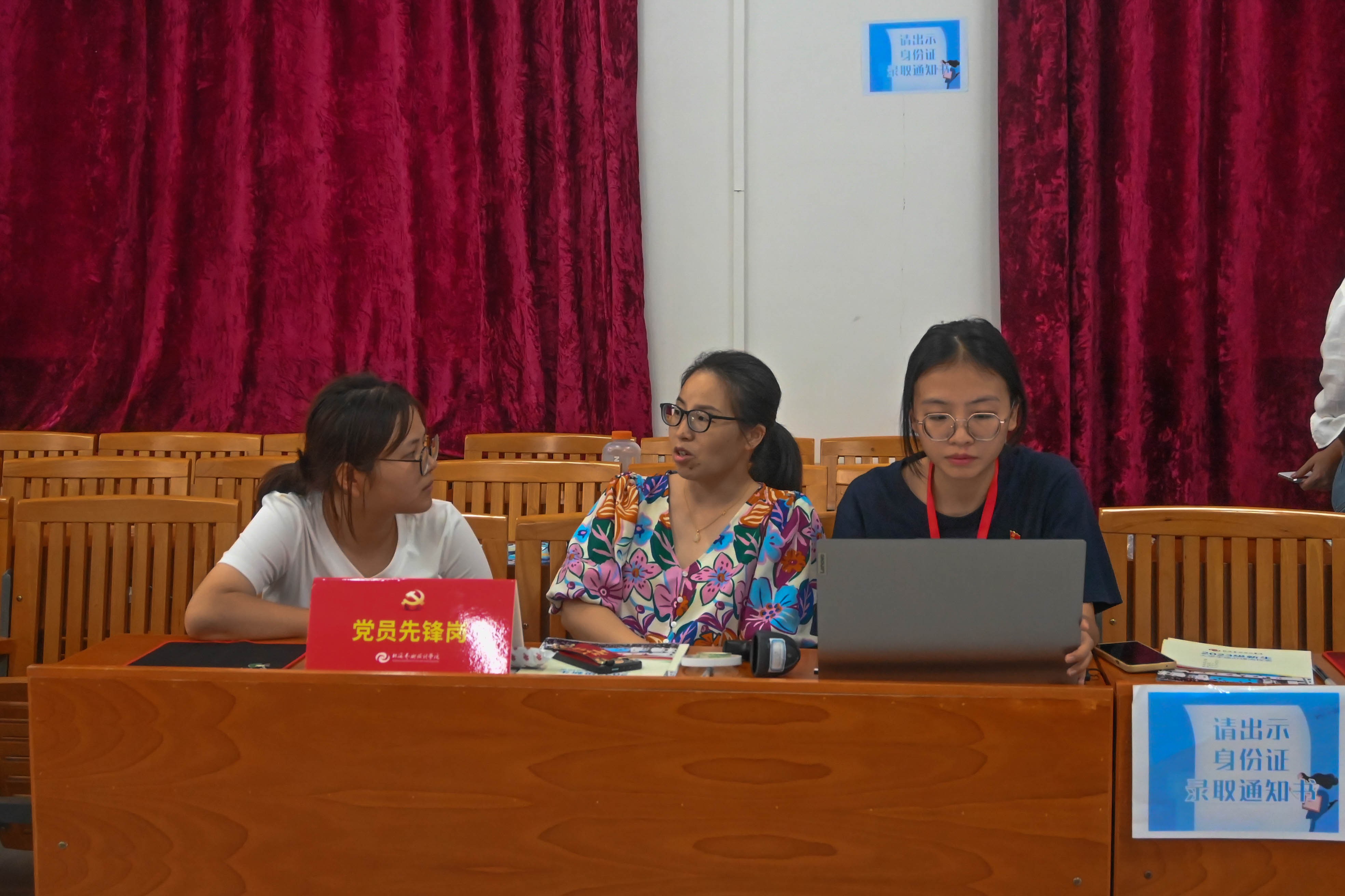 报到当天,教师党员、学生预备党员以及入党发展对象、入党积极分子新生接待志愿者早早到达迎新场地。在火车站迎新接待点,志愿者在出站口高举接站牌翘首以盼,接到新生后便热情地引导他们到乘车点乘车,过程中主动帮新生学搬运行李,提醒大家注意安全。在校内迎新接待点,志愿者引导新生按照报到流程办理入学手续,帮助新生搬运行李,志愿者为新生介绍校园环境。为了方便新生及家长快速辨识,志愿者统一穿着红色志愿服,佩戴工作牌。纵使身心疲惫、大汗淋漓,志愿者仍精神饱满,认真做好迎新工作。