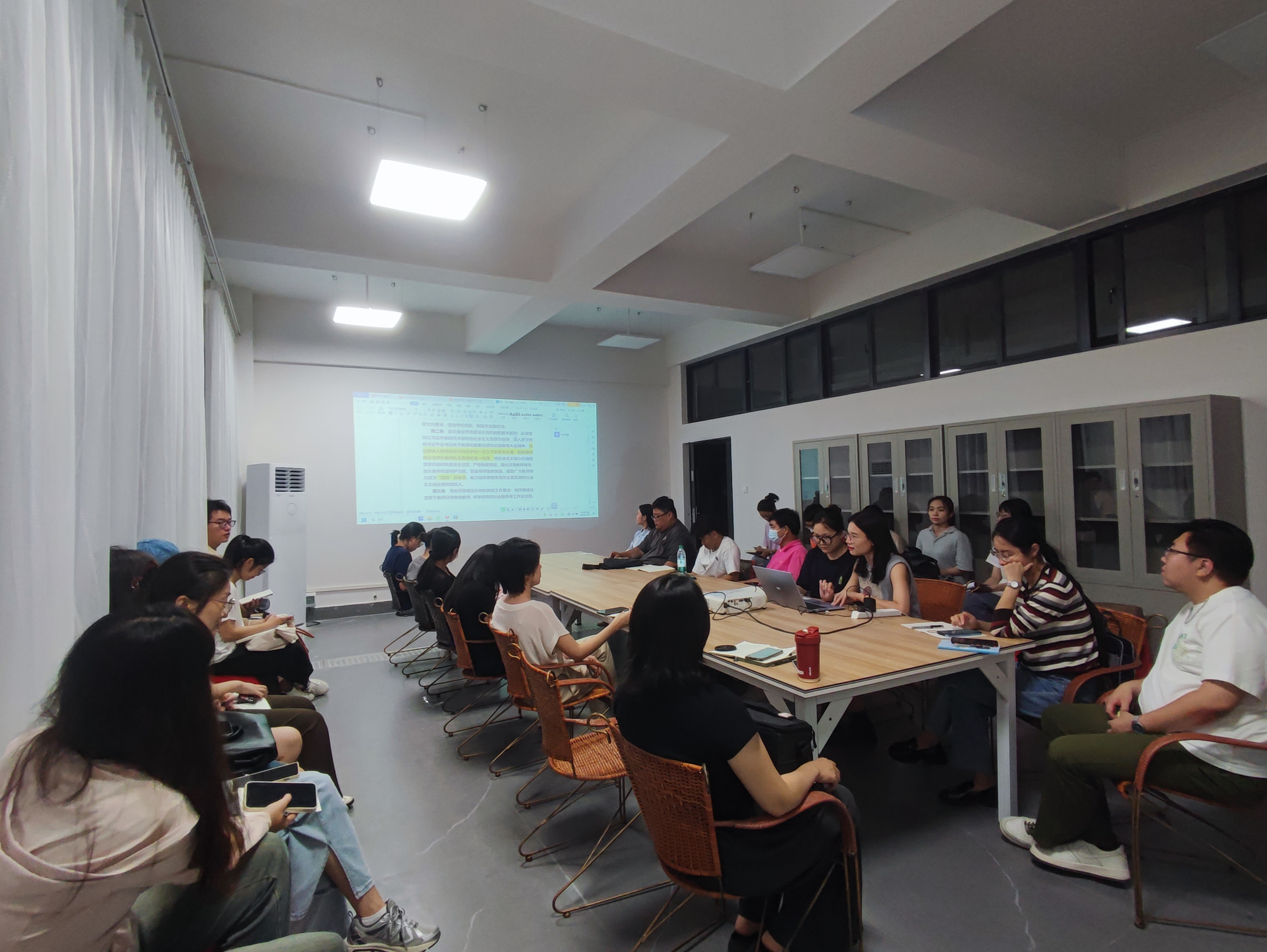 深入学习贯彻习近平新时代中国特色社会主义思想,贯通学习习近平总书记在全国教育大会上的重要讲话和指示批示精神,坚决落实师德师风第一标准,进一步加强我院教师师德师风建设,牢固树立“立德树人”观念,2024年10月22日下午,文学院于南区体育馆一楼会议室召开了2024年下半年师德师风专题学习会。本次会议由岳莹书记主持,学院全体教职员工参加。