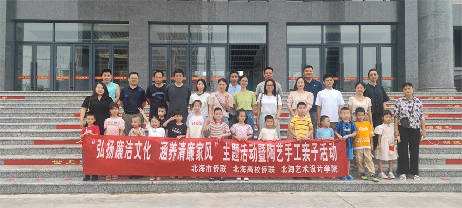 6月15日,北海艺术设计学院联合北海市侨联、北海高校侨联开展“弘扬廉洁文化 涵养清廉家风”廉洁家风主题活动暨陶艺手工教学亲子活动。