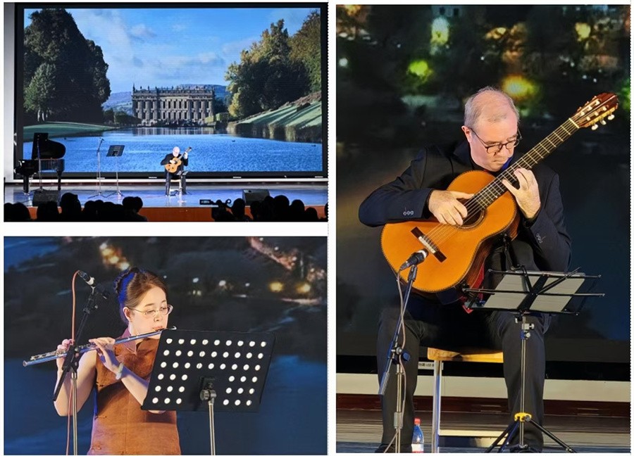 10月26日晚,由北海艺术设计学院主办,北海艺术设计学院舞蹈学院与教育学院承办,北海市音乐家协会协办的“古典吉他与长笛二重奏音乐会”在我校西校区大礼堂成功举办。我校客座教授法国古典吉他演奏家埃瑞克·弗朗塞利(Eric Franceries)先生和旅法长笛演奏家郝雪雯女士带来了一场跨越国界、跨越文化的音乐盛宴。学校师生及社会各界嘉宾共同观看了演出。