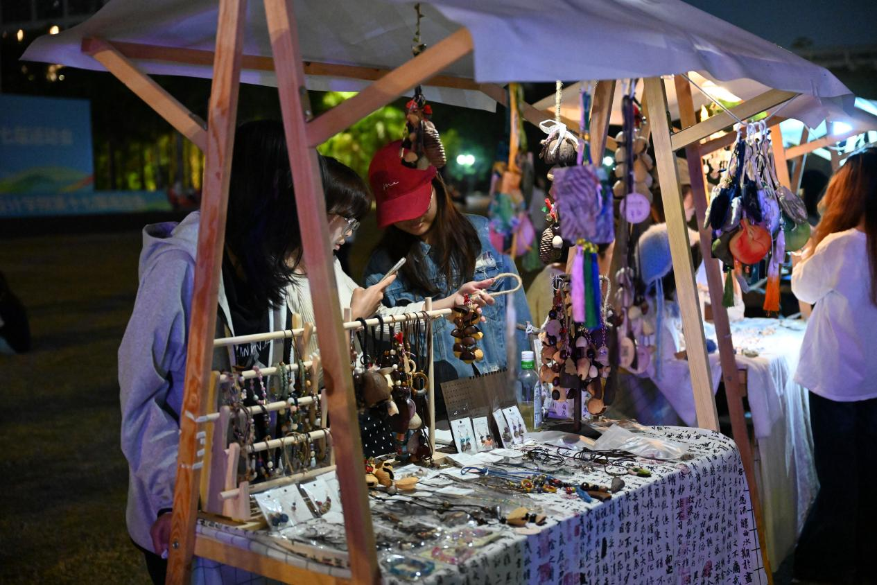 创新创业学院相关负责人表示,创新创业学院坚持把文创市集作为创新创业教育的重要阵地,不断完善制度规范、资金扶持、数据追踪与风险管控机制,常态化开放摊位申请通道,努力推动校园创意与文化产业需求精准对接,为高校创新创业教育提供可复制、可推广的实践样本。(陈渤水/摄)