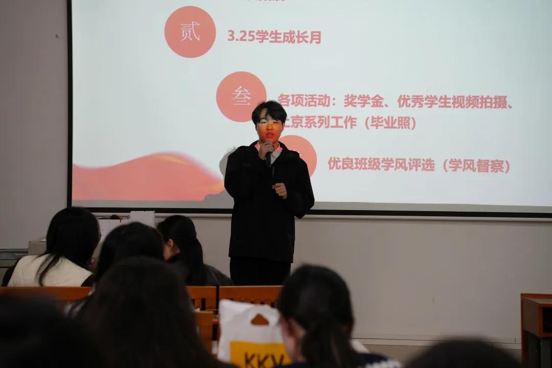 会议伊始,各部门负责人依次上台,就本学期工作进行了系统梳理与深入总结。汇报重点围绕学风建设、部门职能履行情况等内容展开,既展示了阶段性的工作成果,也秉持务实态度,客观剖析了当前存在的不足与改进空间。这些反思精准切实,为下一阶段工作的优化提升奠定了扎实基础。