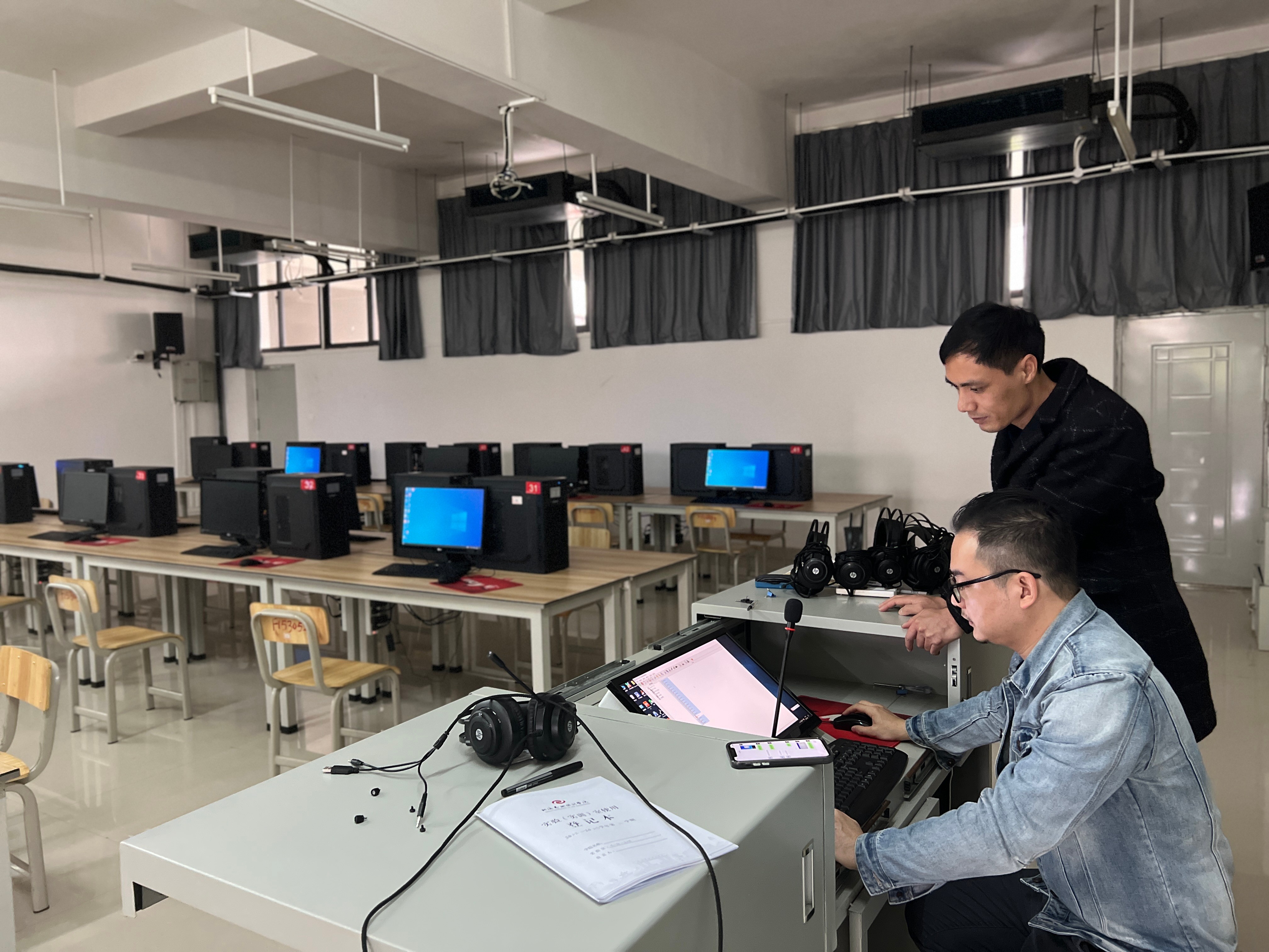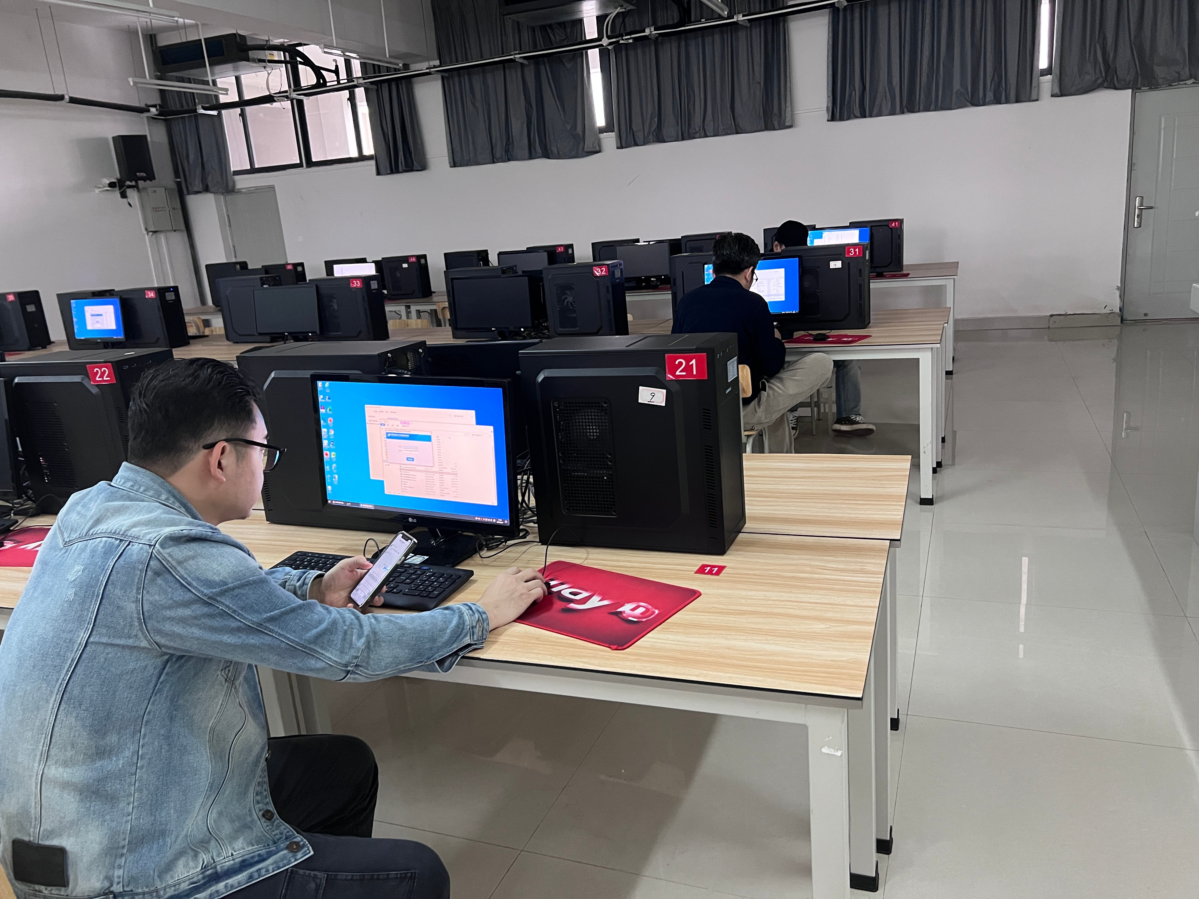 为确保普通话水平测试工作平稳、有序进行,我处工作人员认真调试测试系统,对测试软件、测试环境进行了全面升级优化,确保考试当天网络和机器正常运行,为各位考生营造安全有序的考试环境。(于欣/摄)